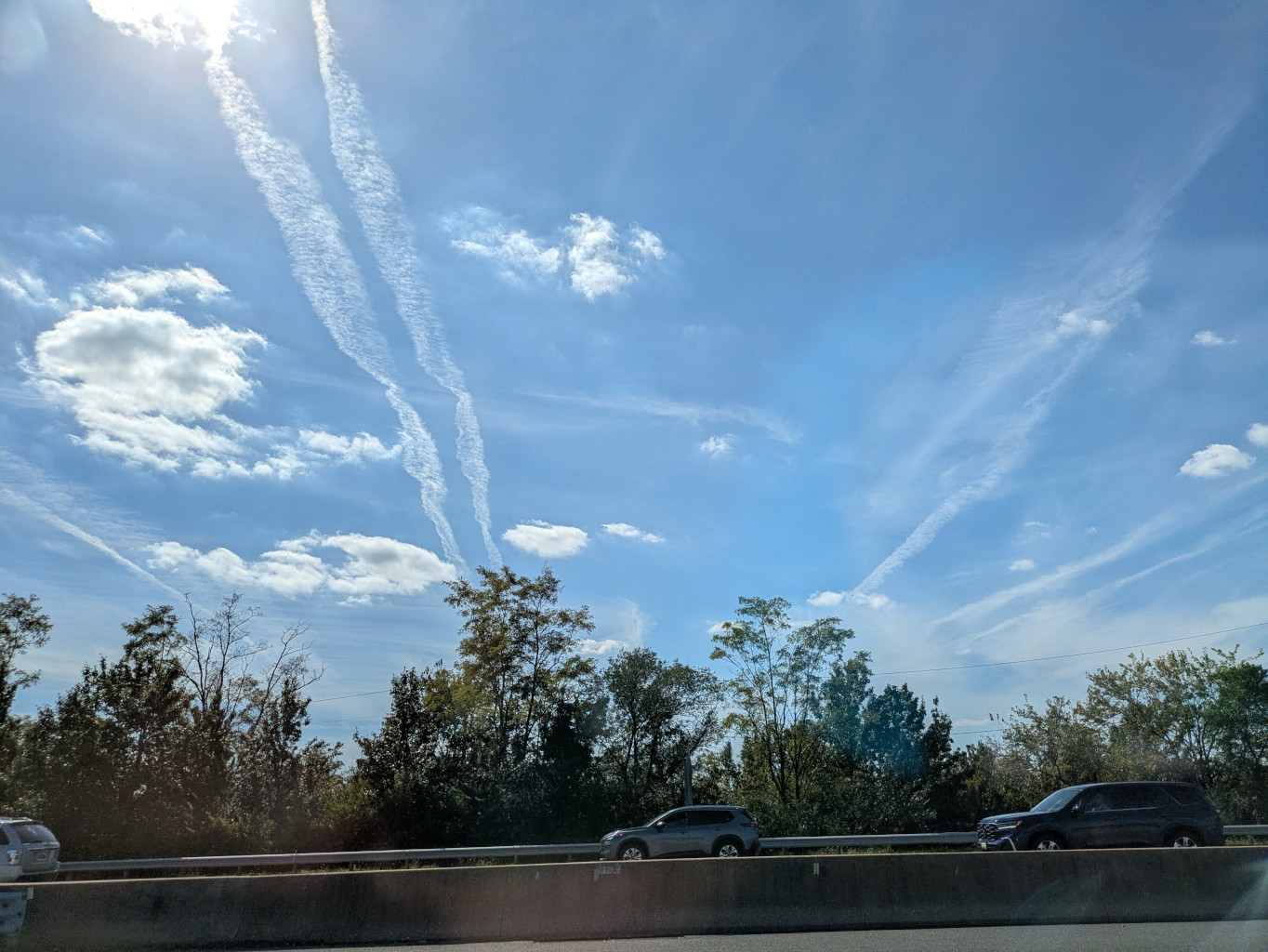 I stick with my theory because I've personally witnessed this cloud creation effect 50 times or more, this very thing happen on many a clear-skyed morning in Maryland this past year. Within 30-60 minutes of lines appearing in the sky from grayish jets (the kind you don't see on vibrantly-painted commercial aircraft but rather, military craft) the sky begins filling with clouds appearing from nowhere, respecting-not whatever plans the winds had, or those of the meteorologist.