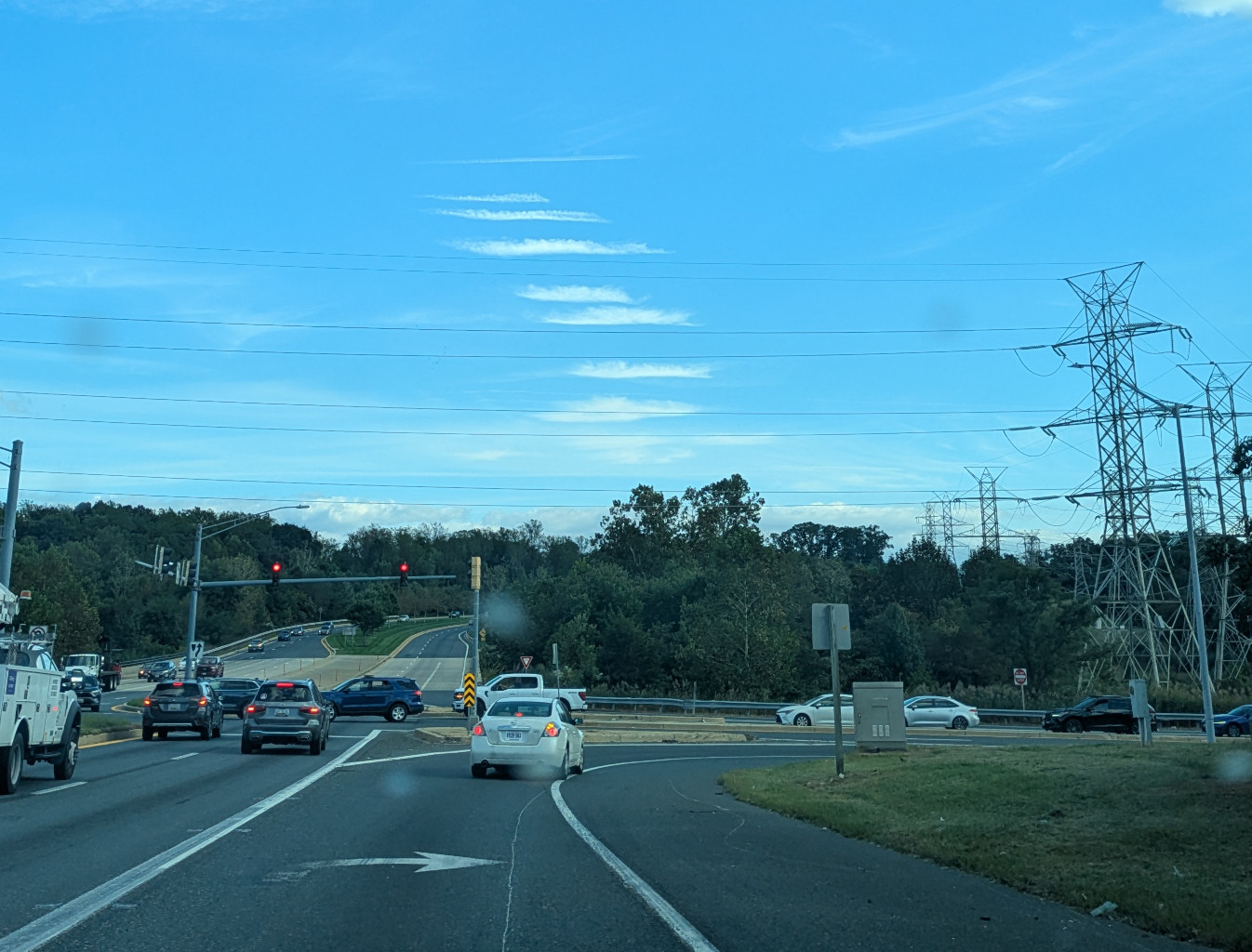 Look towards the horizon, above the sedan; the projection gets squeezed. From now on, look towards the horizon when you are out & about to see this. Also note the blurry spots.